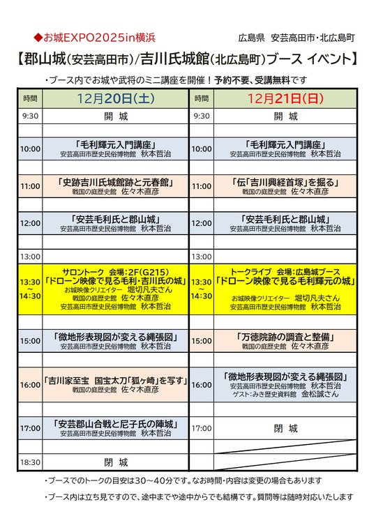 安芸高田市では、 12月20日土曜日、21日日曜日に神奈川県横浜市のパシフィコ横浜ノースで開催される、「お城EXPO2025」へ出展します。