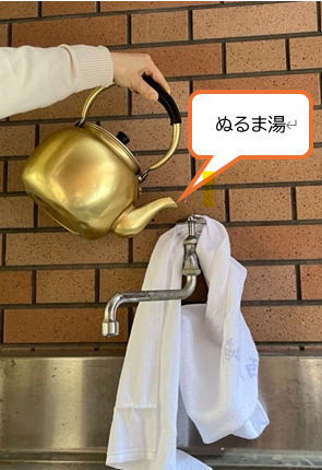 冬季になると水道管・給湯器などが、凍結により壊れたりします。 凍結を防ぐには、露出した水道管や屋外の蛇口を保温材や乾いた毛布などで保温してビニールシートなどで覆ってください。凍結防止ヒーターが設置してある場合は、忘れずにコンセントにプラグを挿しスイッチを入れましょう。また、家をしばらく留守にする場合や集会所などではメーターボックスの中の止水栓を閉めて水抜き栓か低い場所にある蛇口を開けて水道管にある水を抜いてください。