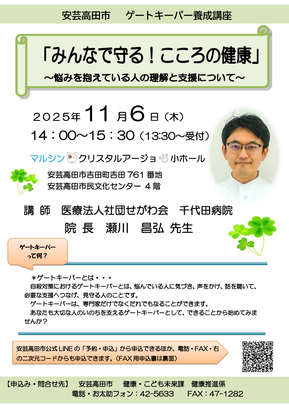 ゲートキーパー養成講座「みんなで守る!こころの健康」