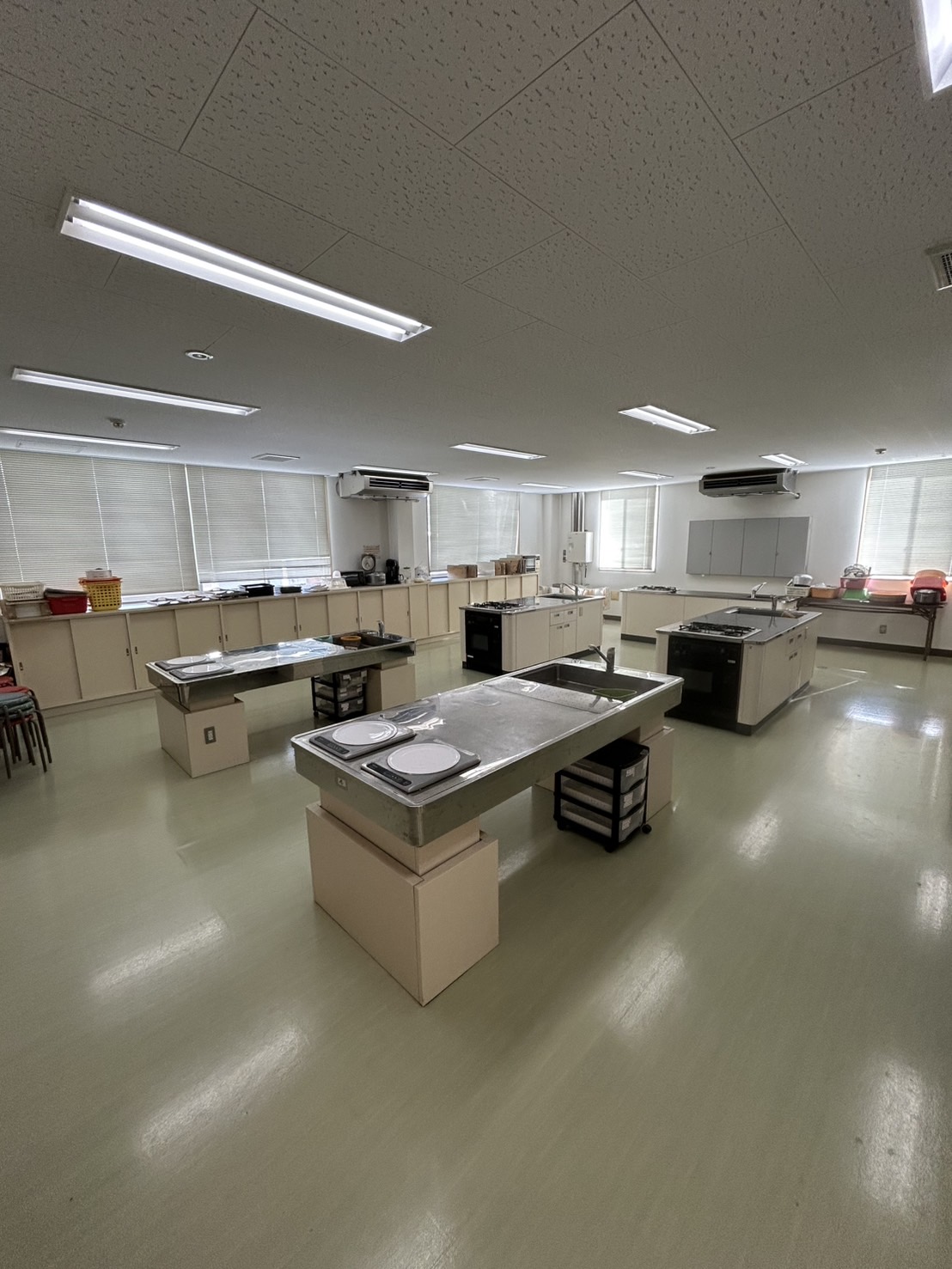 設備:調理台4・調理器具(IHとガスコンロ)・椅子・冷暖房設備