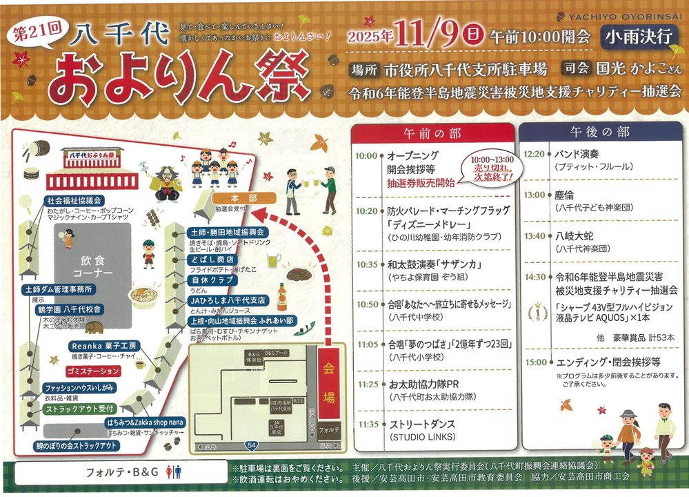 11月9日(日)に、「第21回八千代およりん祭」を、安芸高田市八千代町で開催します。