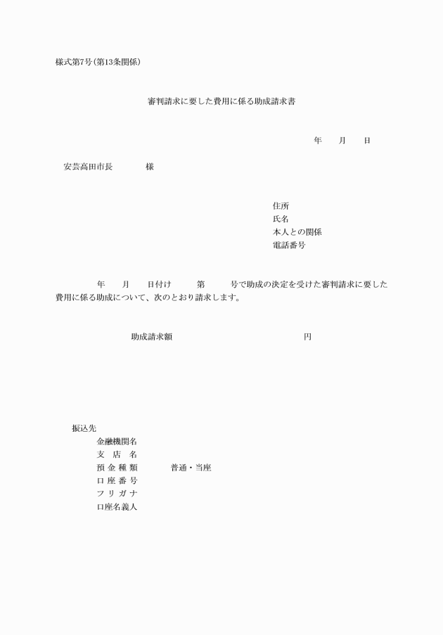 (1) 市民税が非課税である世帯に属する者で、審判請求に要した費用の支払が困難な状況にある者